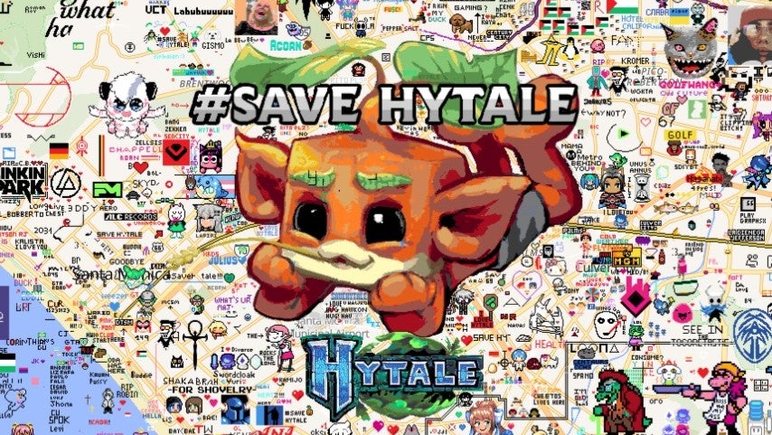 A gigantic art piece with "#Save Hytale" has been painted on WPlace over Santa Monica. A community effort by fans…